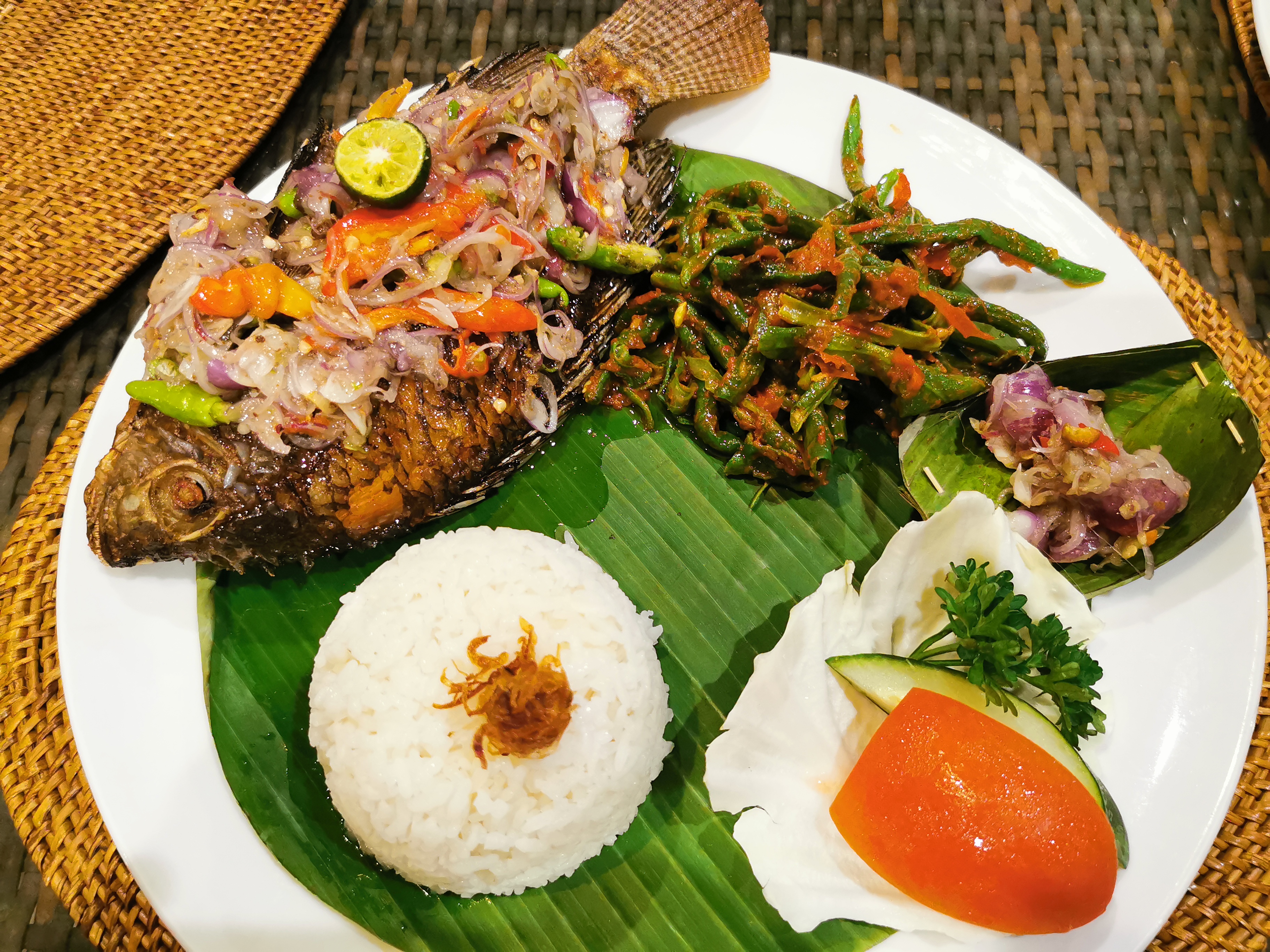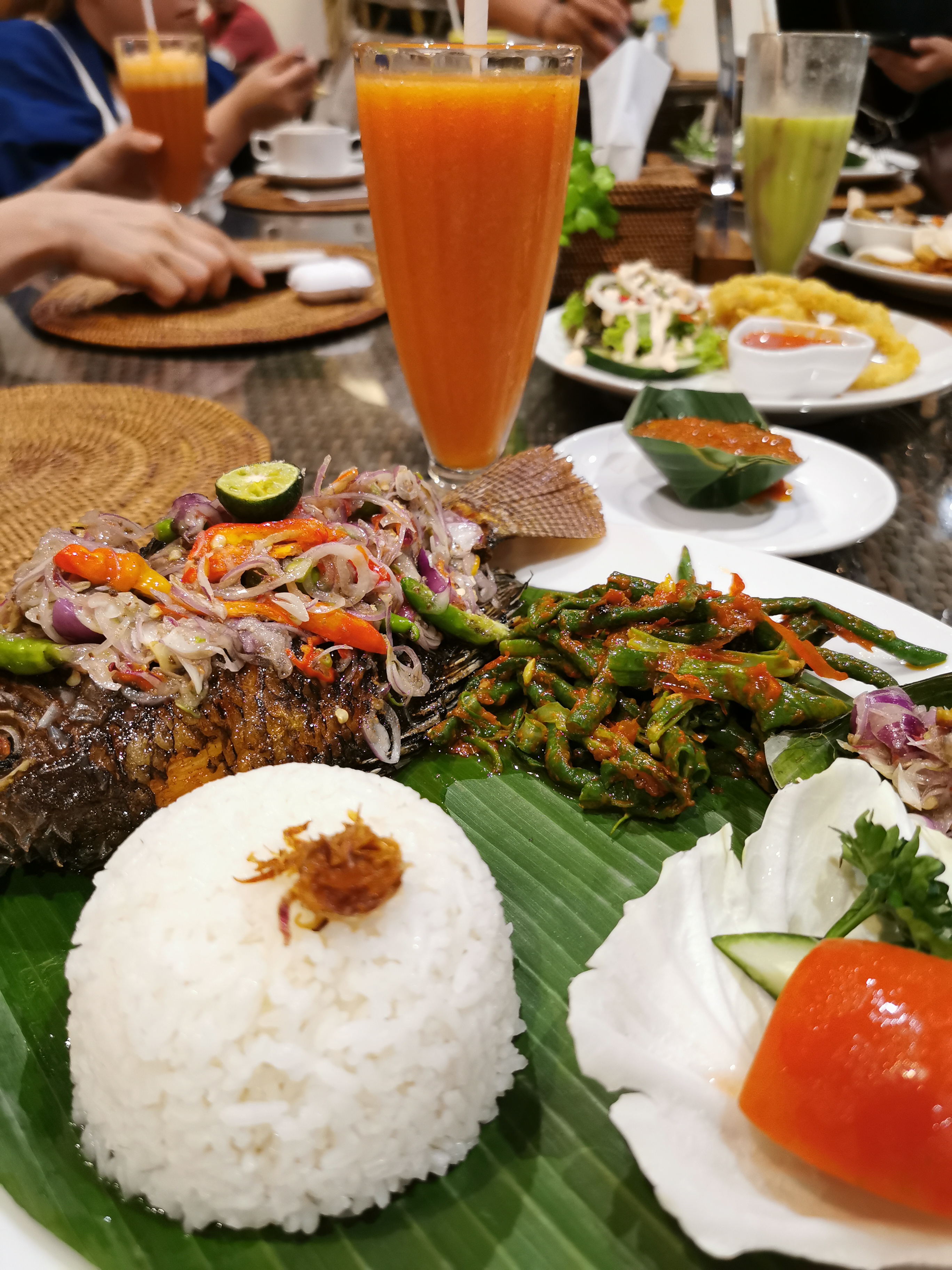 Food in Bali are generally appetizing and satisfying. I was eating all familiar food such as ayam (chicken) on the first day, but realized I had to try Balinese food. So, I tried turkey and duck and dragon. Joke, no dragon. I can’t forget the last meal I ate and how it was extremely delightful: Fried Tilapia with Balinese Vegetable and Sambal. All fruit juices are natural juices too.