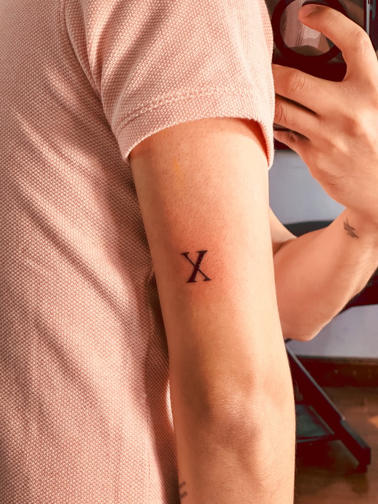10. X as 10: 10th Country in a year – The most straightforward meaning: I got this tattoo from Nepal, the 10th country I visited this year 2023 after India, Switzerland, France, Poland, USA, Germany, Italy, Netherlands, and Singapore.